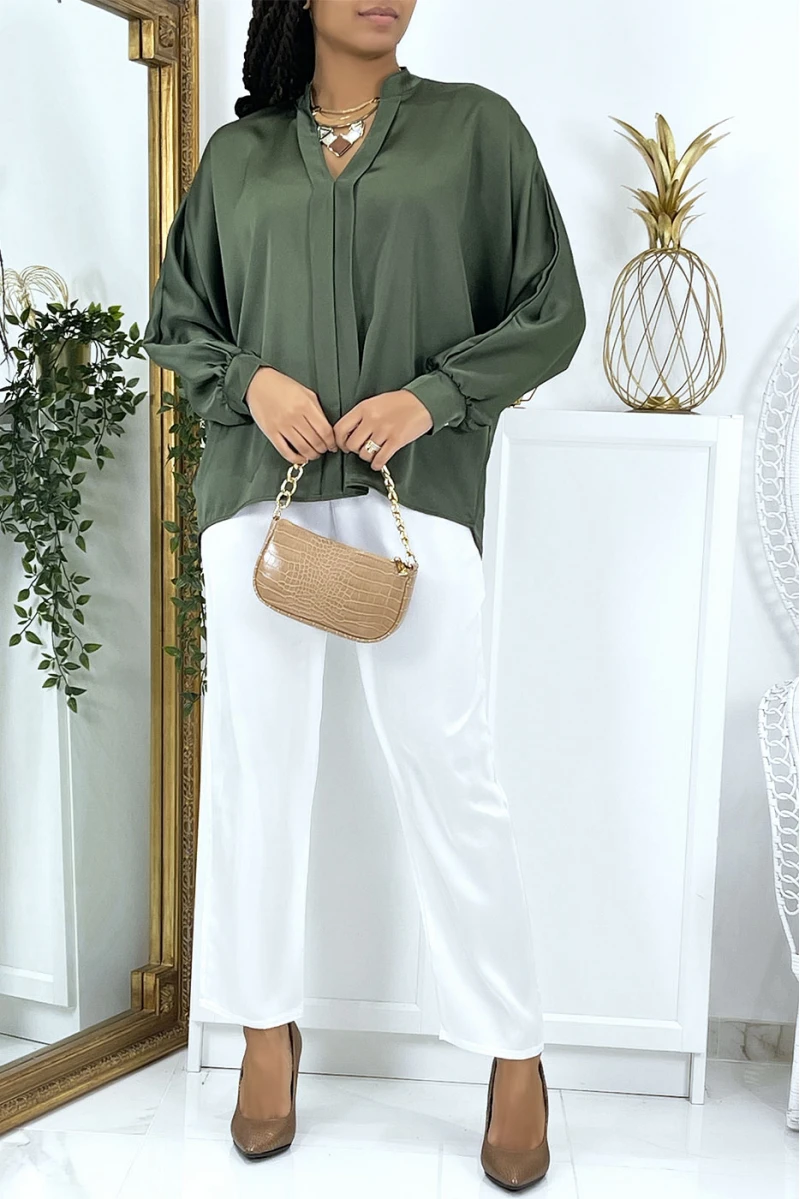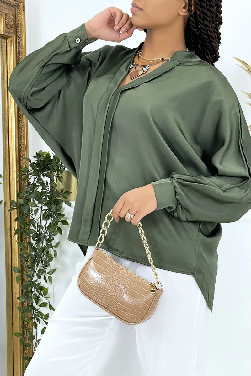 Blouse verte over size satiné avec plis. Blouse femme fashion et pas cher