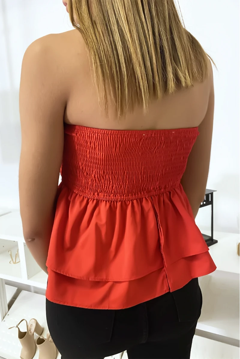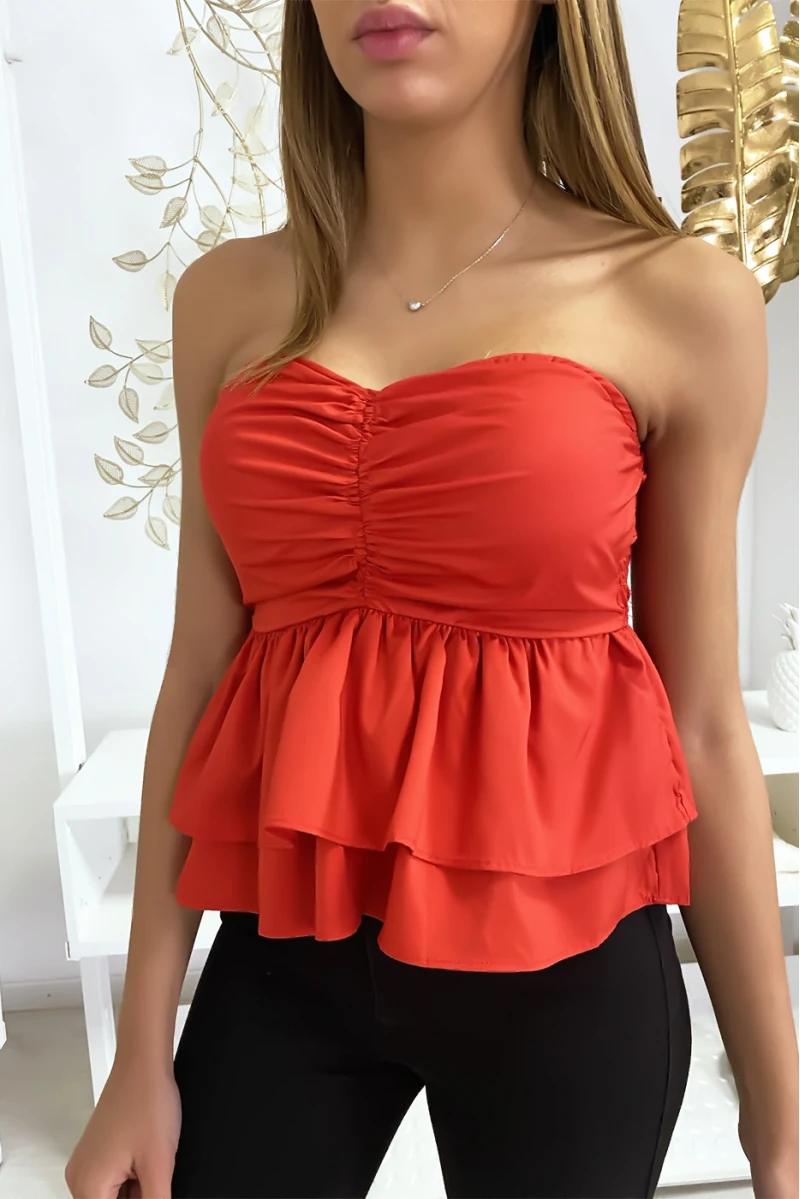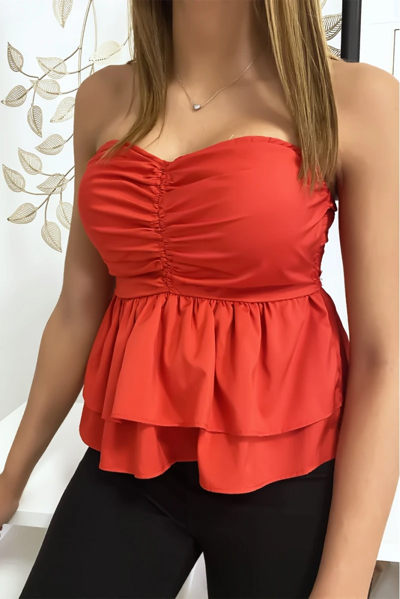 Joli bustier rouge très chic et sexy avec volant et fronce au buste. Mode femme