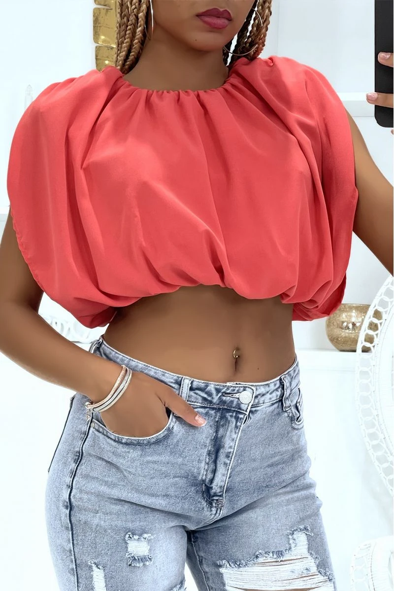 Crop top corail en voile doublé avec épaulettes