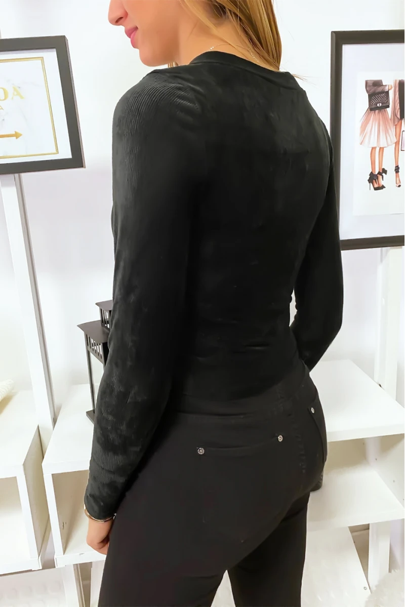 Petit crop top noir en velour à gros boutons montants dorés pour un joli décolleté