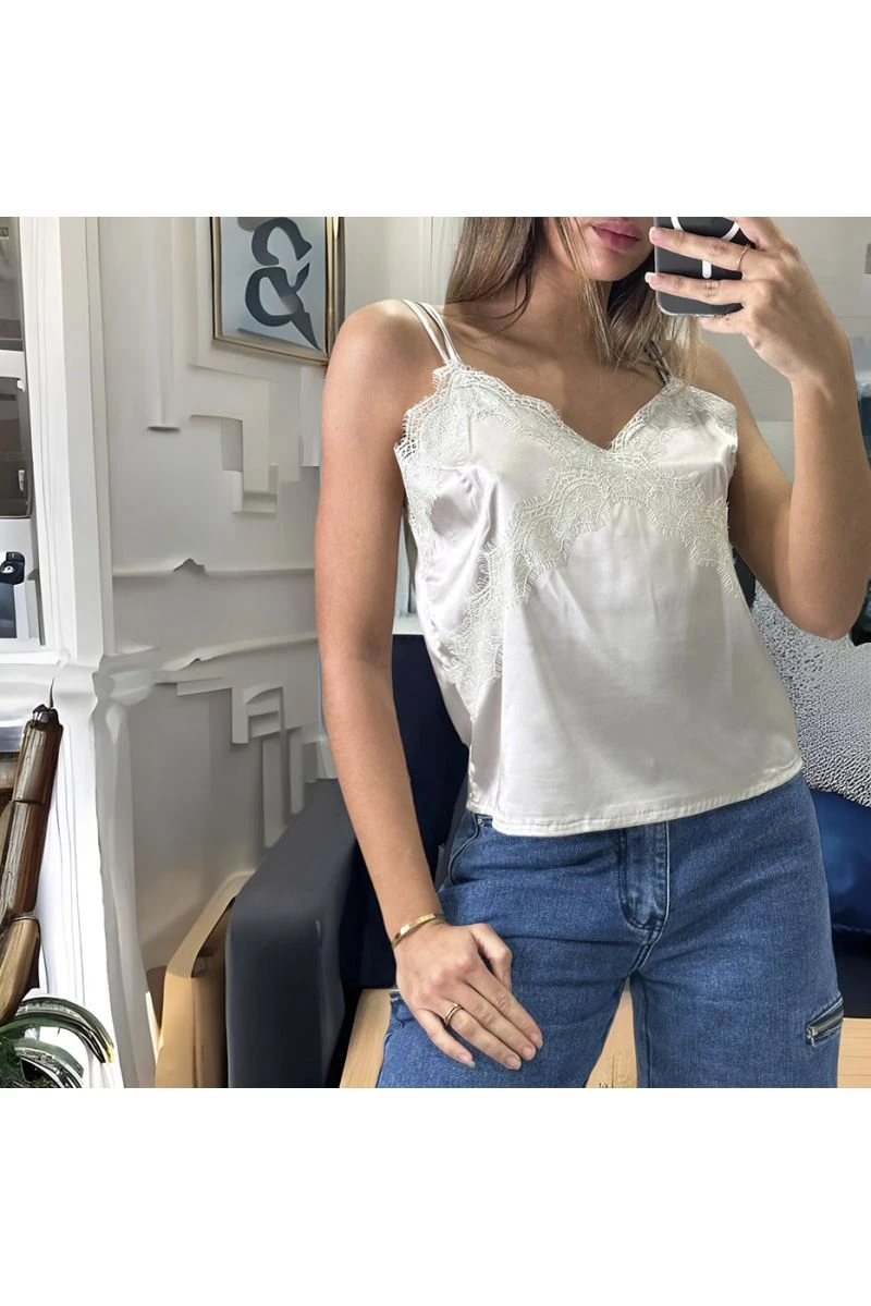 Débardeur beige satiné avec dentelle