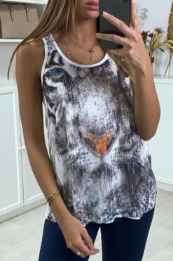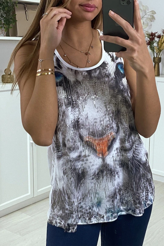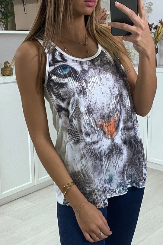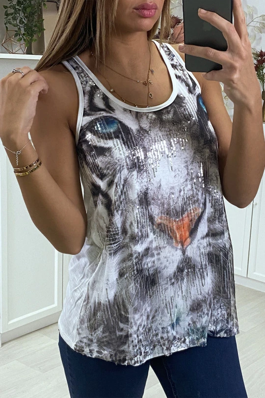 Debardeur Blanc A Imprimé Tigre En Sequins