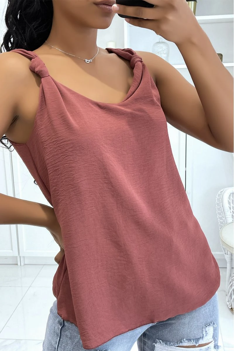 Débardeur cognac à bretelles en noeud fluide et doublé