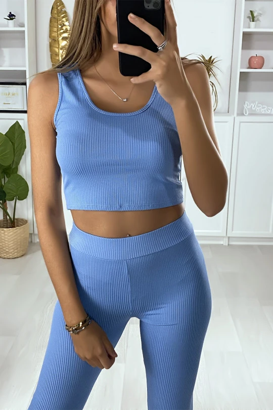 Débardeur pour femme court côtelé en turquoise. Mode femme pas cher