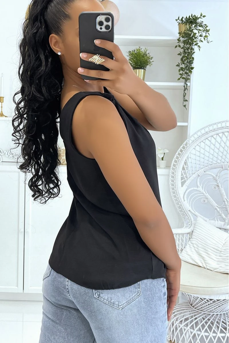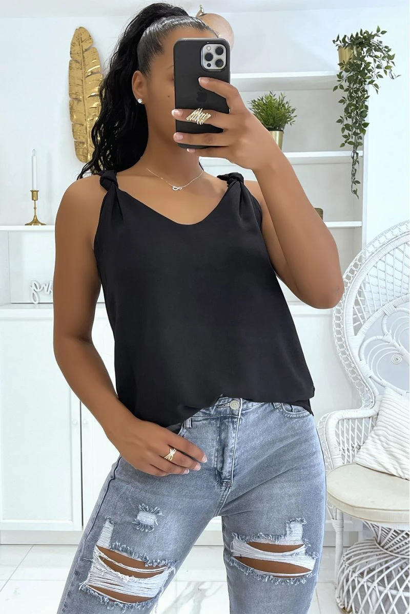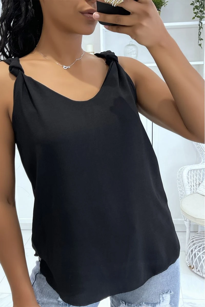 Débardeur noir à bretelles en noeud fluide et doublé