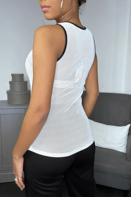 Débardeur rose filet style rock à motif fleurs. Tshirt débardeur Tendance rock avec motif fleurs printemps/été
