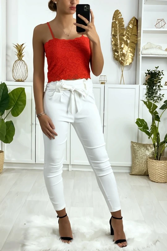 Débardeur pour femme rouge en dentelle doublé avec bretelle amovible. Top femme pas cher