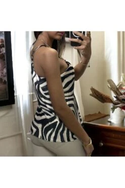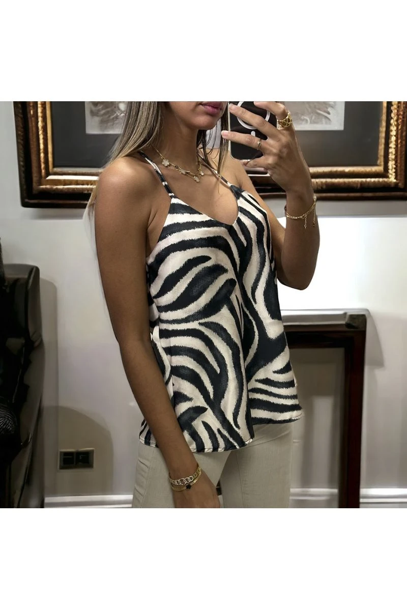 Débardeur satiné et zébré noir et blanc