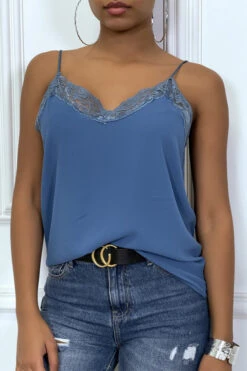 Top Débardeur Indigo Fine Bretelles Col En Dentelle