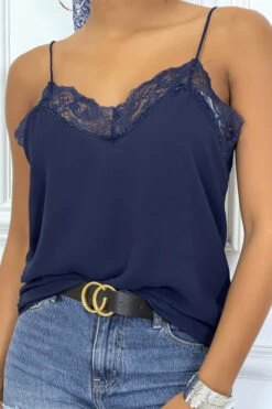 Top Débardeur Marine Fine Bretelles Col En Dentelle