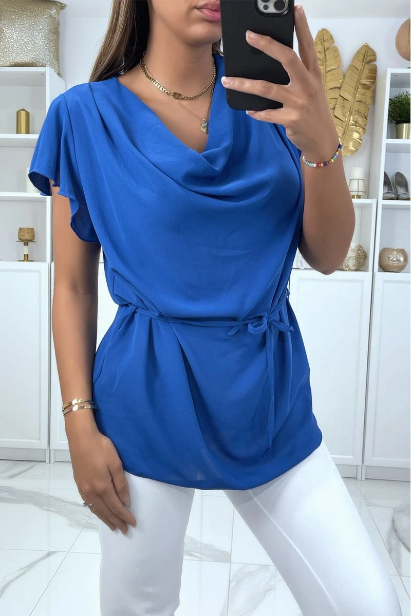 Haut royal à manches courtes col rond tombant et dentelles au dos