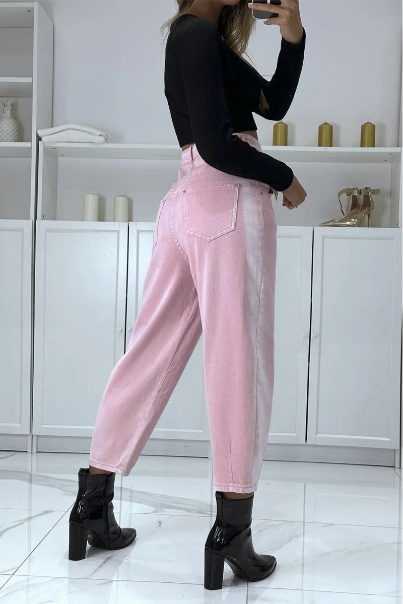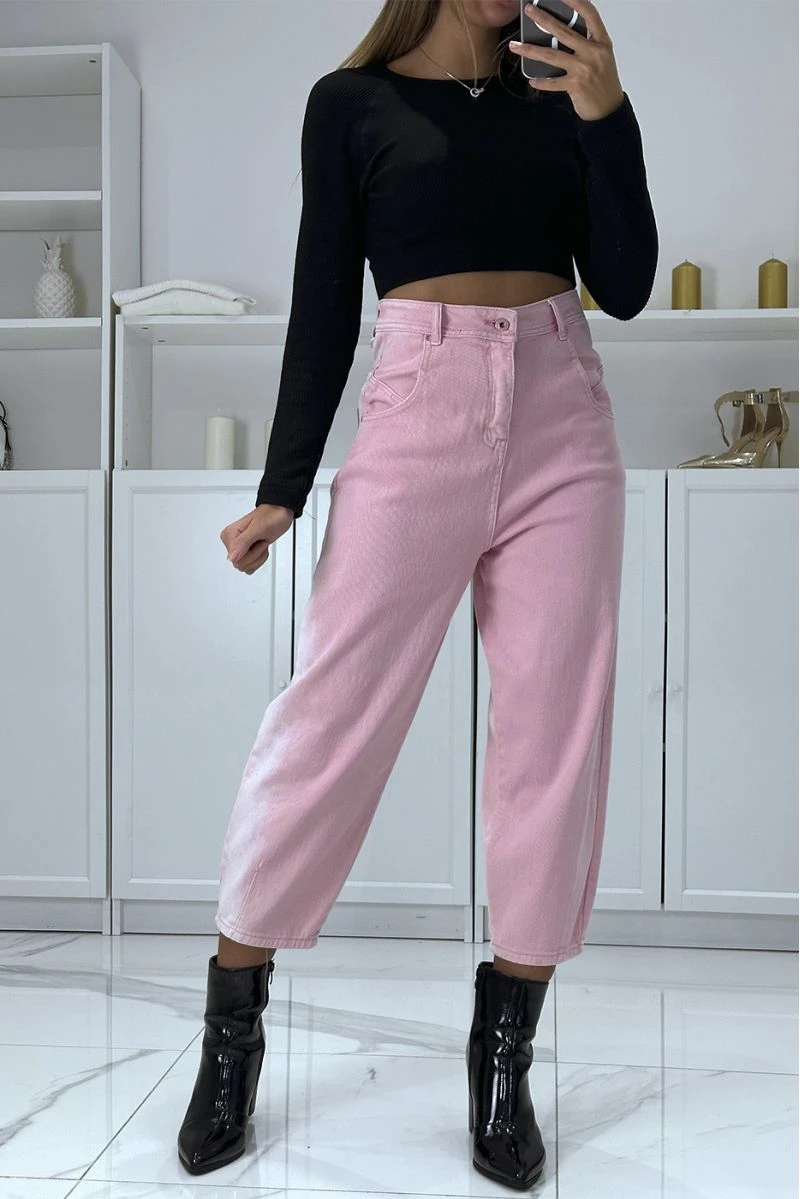 Jean loose rose 3/4 et taille haute, délavé sur les côtés