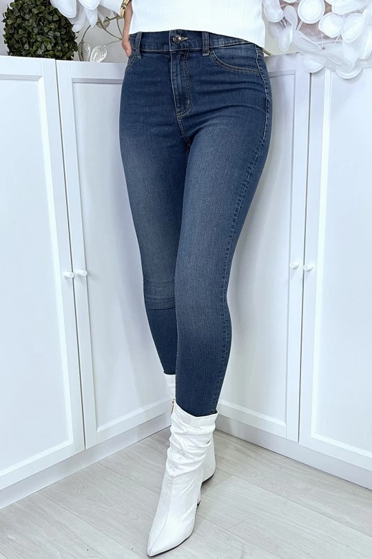 Jean slim bleu délavé sur les cuisses à poches arrières