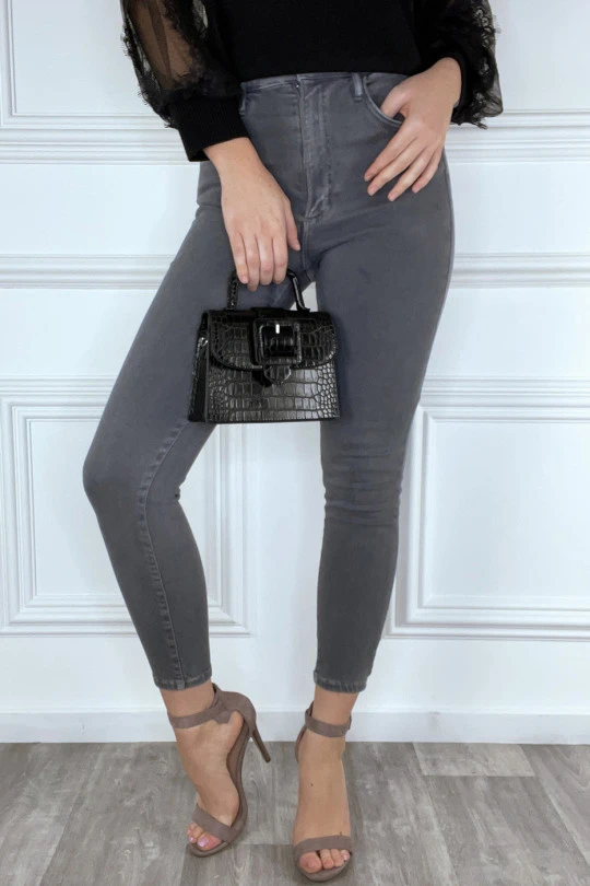 Jean slim gris taille haute et stretch