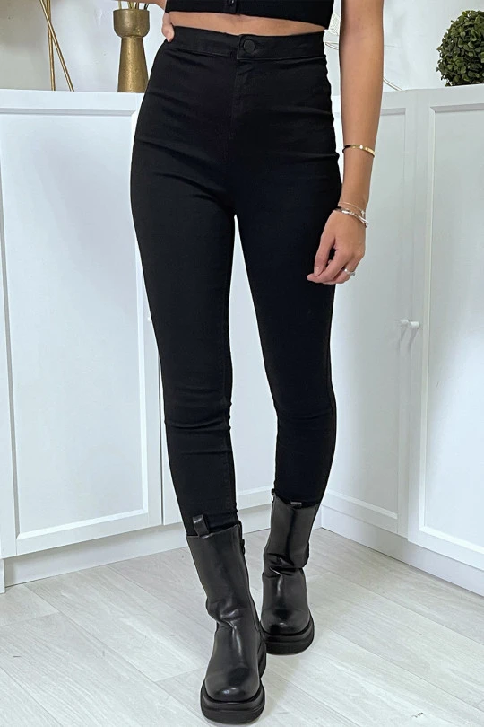 Jean slim noir taille haute avec poches arrières