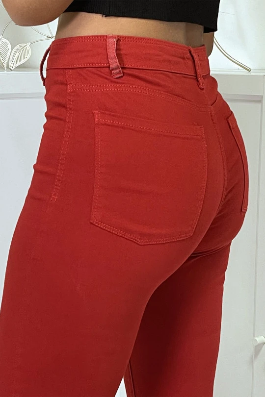 Jean slim rouge taille haute avec poches arrières