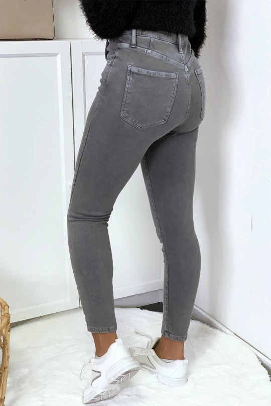 Jeans gris en taille haute très extensible avec poches. Jeans femme fashion et pas cher