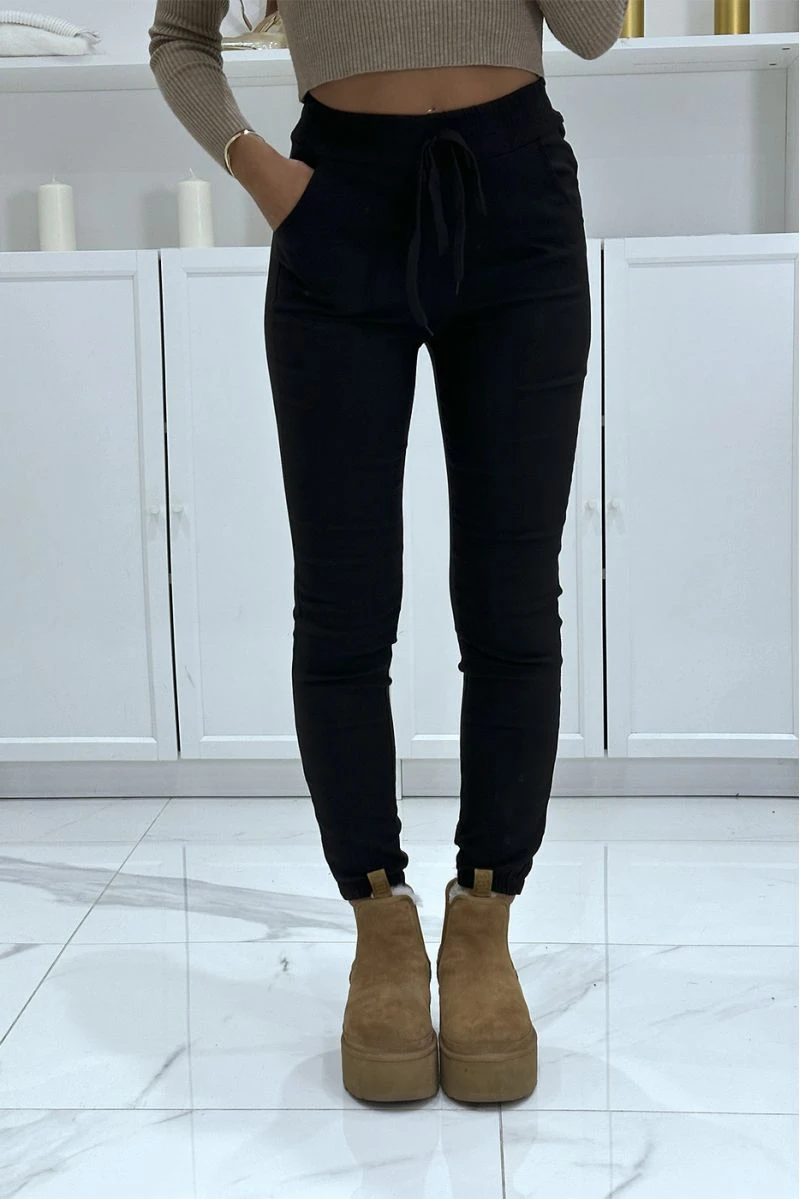 Pantalon slim noir extensible taille haute à cordon et poches