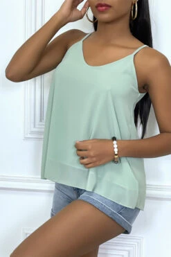 Top Vert D'eau Côtelé A Fines Bretelles