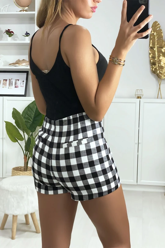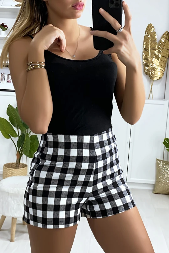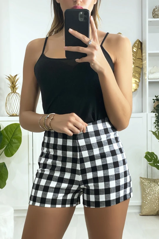 Short à carreaux taille haute pour femme avec fermeture sur le coté. Short femme fashion