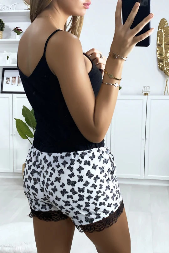 Short blanc pour femme motif papillon doublé avec dentelle. Vêtement mode femme pas cher