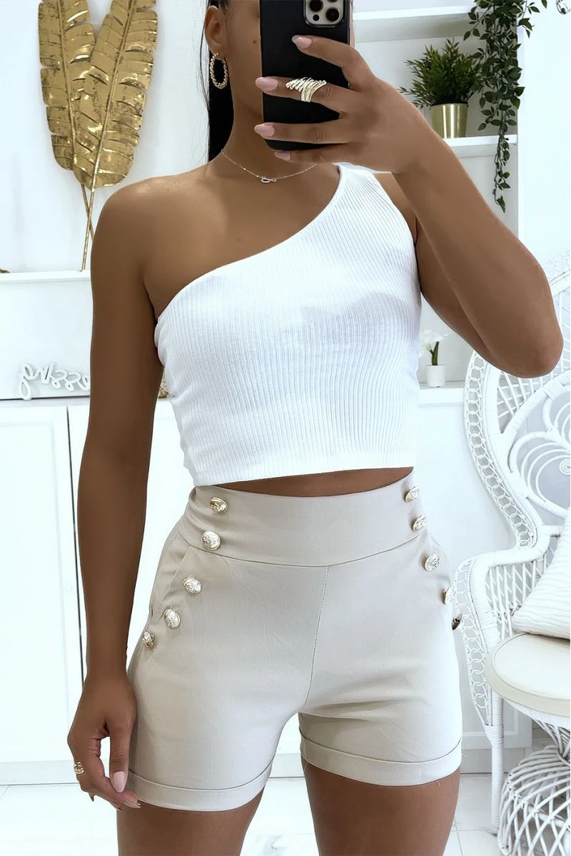 Short taille haute beige effet push up et taille fine avec ses jolies butons sur les côtés