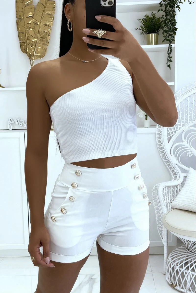 Short taille haute blanc effet push up et taille fine avec ses jolies butons sur les côtés