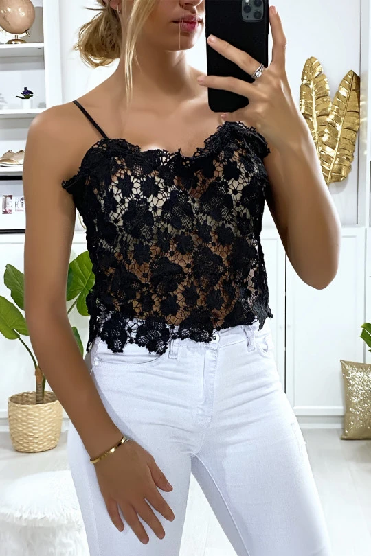 Top débardeur noir en dentelle pour femme. Mode femme pas cher
